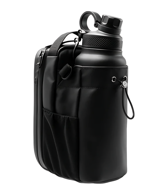 - Compact & Spacious: Fits bottle, phone, keys, and essentials.